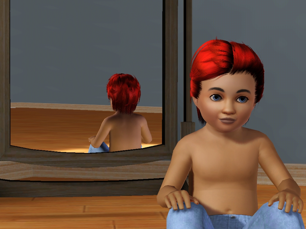 I aged both of them Up right after they were born Just to See if they would look like their Dad! I was Very Curious! Violet didn't seem to Inherent anything from her dad, Her cheekbones looked a little curvy but other then that she is a carbon copy of me!